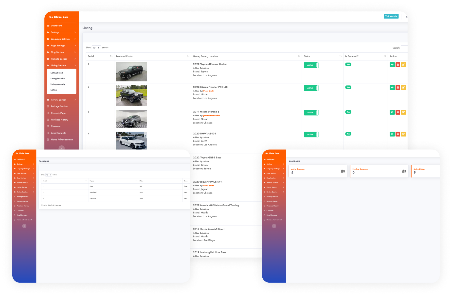 Admin supervised listing, featuring location customization, and affiliating them with specific brands. This feature streamlines methodical arrangement and seamless browsing experience on the website for car purchases.