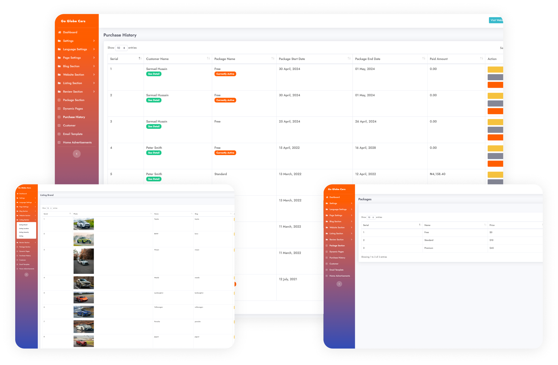 Admins manage the packages provided to users permitting personalization and integration of new packages boosting user experience on car purchasing websites.