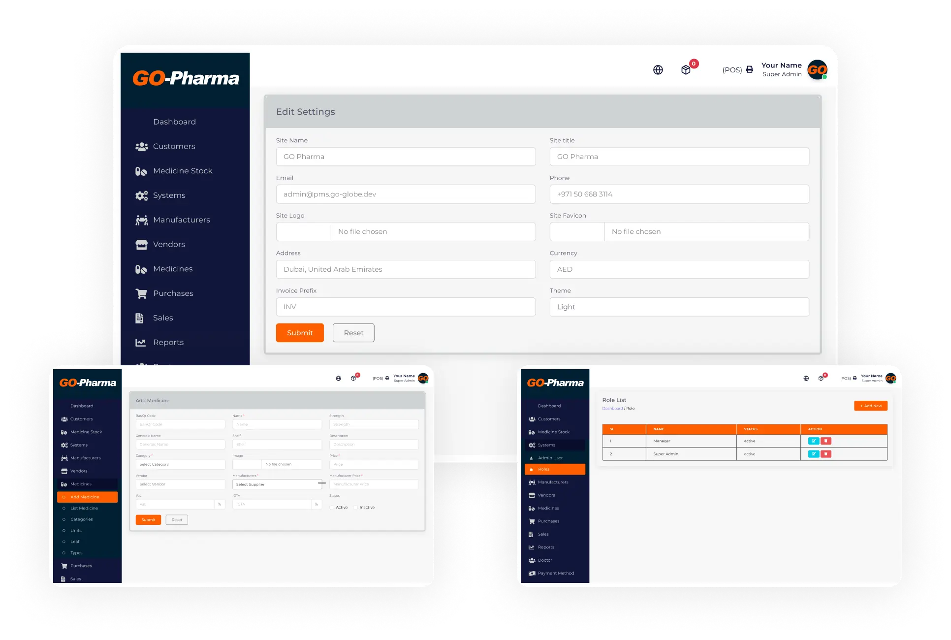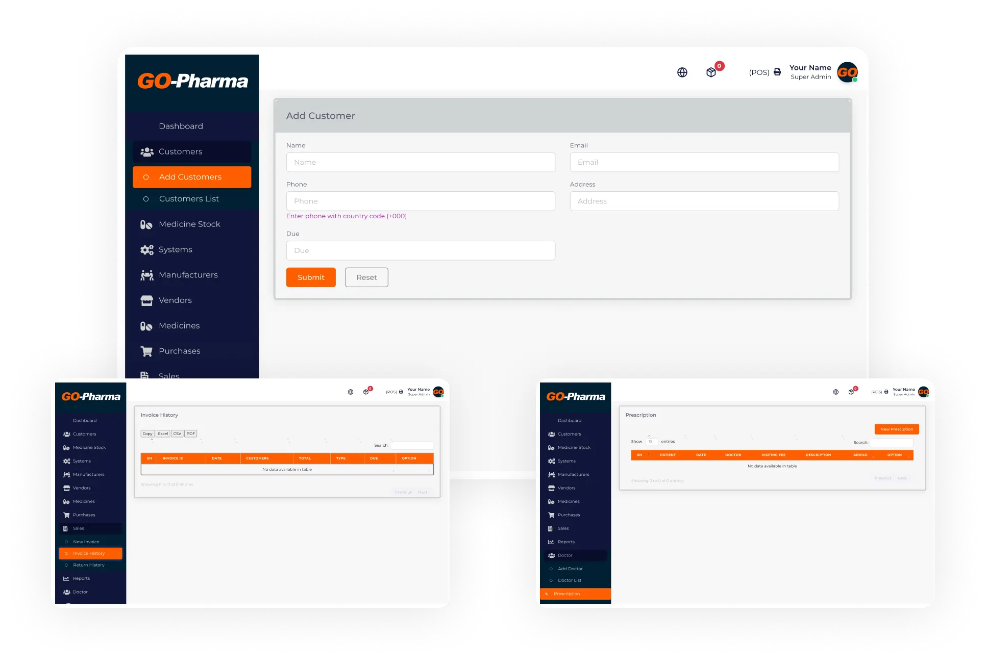 We designed our pharmacy management system to help you organize and maintain the medication use process in your pharmacy by storing your data and enabling certain functionalities