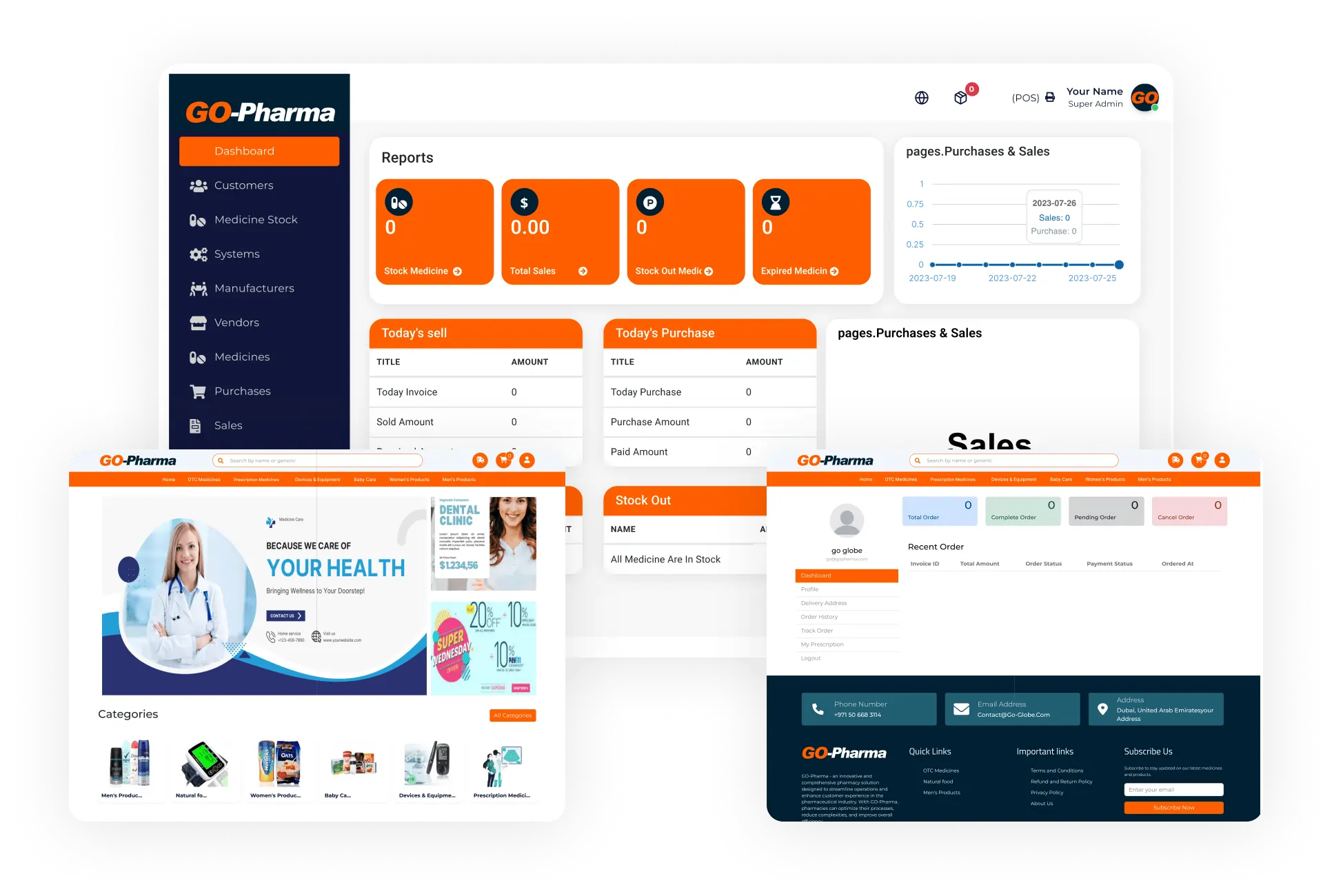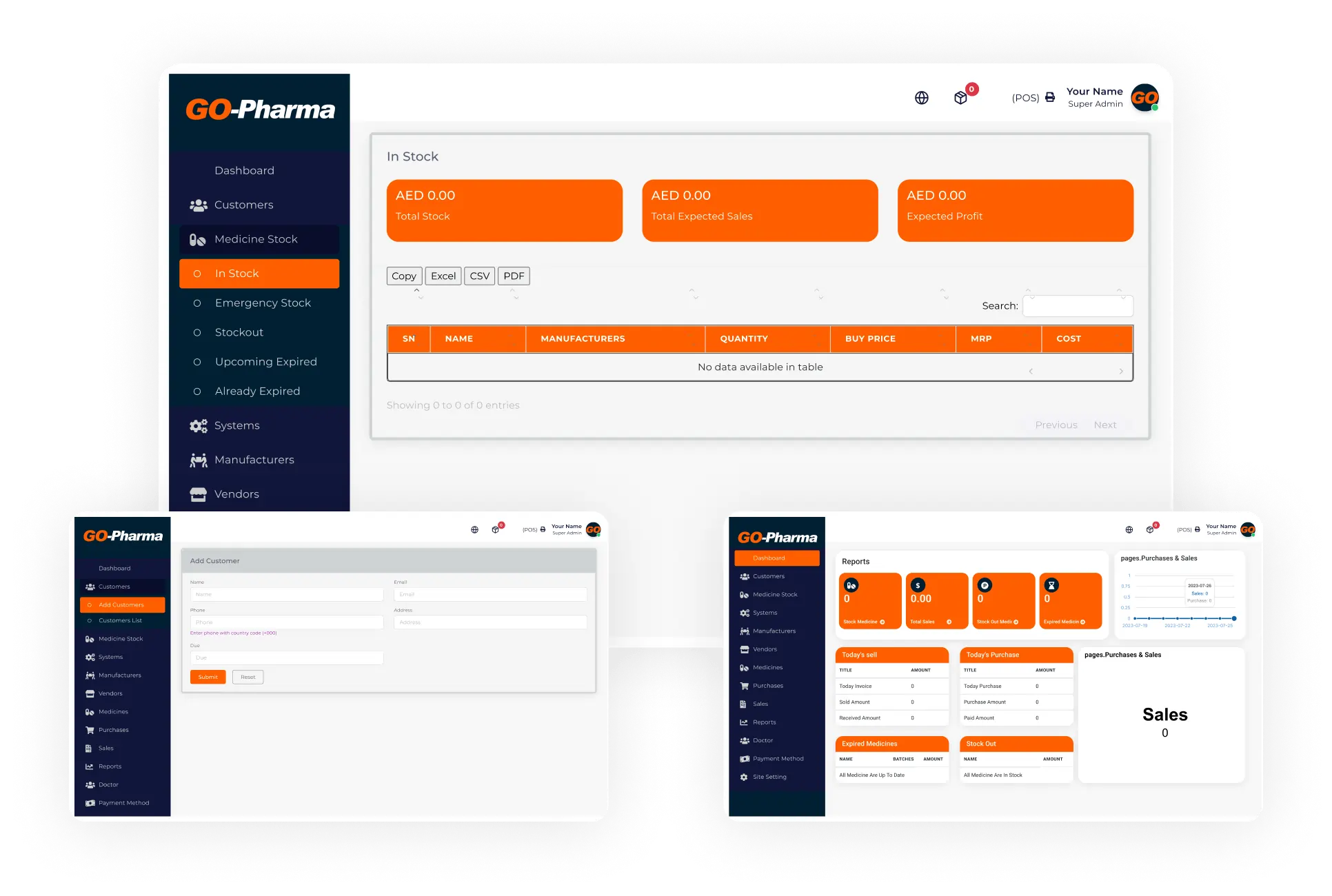Our system includes features like an inventory managing module (for managing and updating pharmacy stock) and a document management module (for storing and retrieving necessary documents like insurance certificates, prescriptions, and salary schedules). We also offer analytics (to give insight into performance in terms of sales and expenses) and the option to integrate your pharmacy management system with a point of sale system or prescription software.